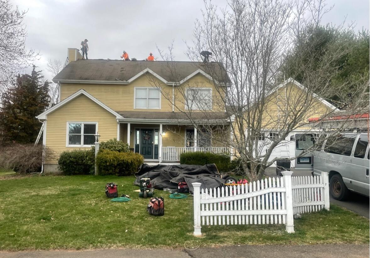 Here was a farmhouse from 1855, that had a 20 year old roof on it, which we removed and recycled. We also removed and replaced all flashing on three chimneys with new lead flashing. The asphalt we send off to be recycled is turned into roads that span across Connecticut and Massachusetts.
