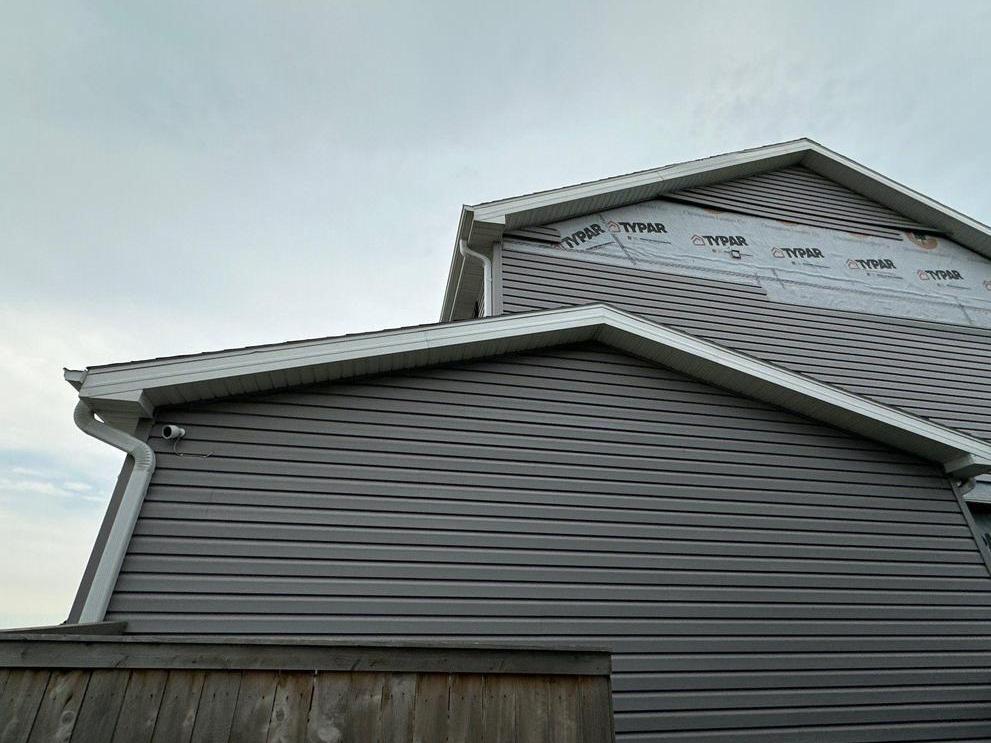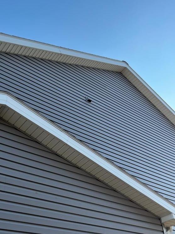Partially replaced Mastic Quest vinyl siding and fascia (due to damage from a recent storm).