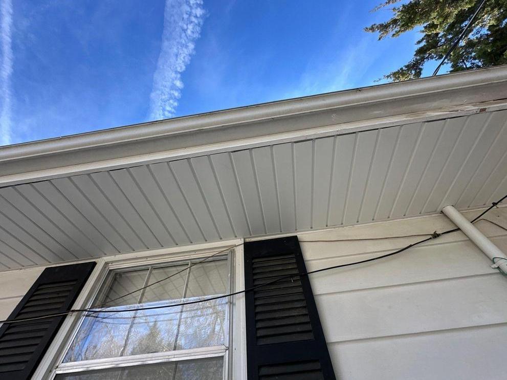 Partially replaced solid soffit materials with Mastic trim coil (due to damage being covered by a retail contract).