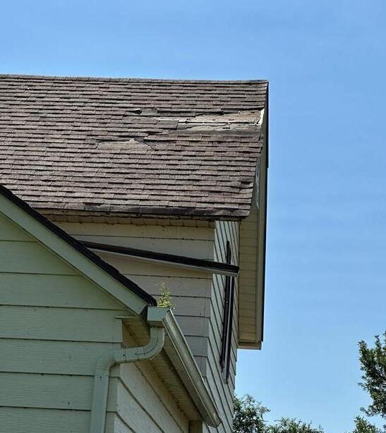 When a recent storm swept through Wimbleton, ND, Gary, a local homeowner, noticed a large section of his asphalt roof had been torn away, leaving part of the roof decking exposed. To make matters worse, a long piece of fascia and gutter was also hanging loose and in need of repair. Concerned about the potential for further damage, Gary contacted the trusted professionals at Vita Roofing for a prompt inspection.