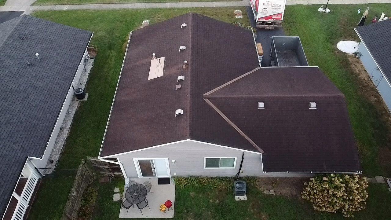 This Maineville home had an old, rusted metal roof over the main part of the house that had seen better days. The homeowner decided it was time for a more reliable, long-term solution to protect their home.