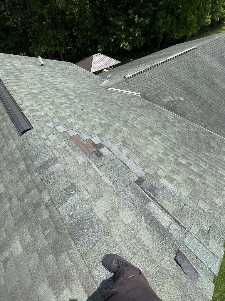 This homeowner in Blanchester, OH needed a roof repair because their existing roof had shingles incorrectly installed on the decking, causing entire bundles to fall off — despite the roof being only 12–13 years old.