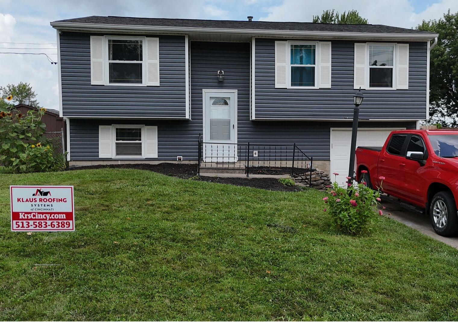 This Cincinnati home underwent a major exterior upgrade after a damaging windstorm left parts of the roof and siding compromised. Our team helped the homeowner navigate the insurance process to secure coverage for all storm-affected areas. From there, the homeowner chose to invest in a complete exterior refresh—including a full color change for a unified, like-new appearance.